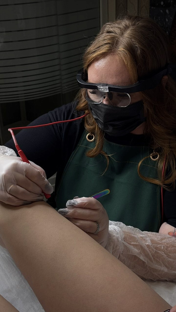Выполняю электроэпиляцию — это метод постоянного удаления волос, признанный эффективным даже для самых чувствительных зон и самых «непослушных» волосков: светлых, седых, пушковых или одиночных.
